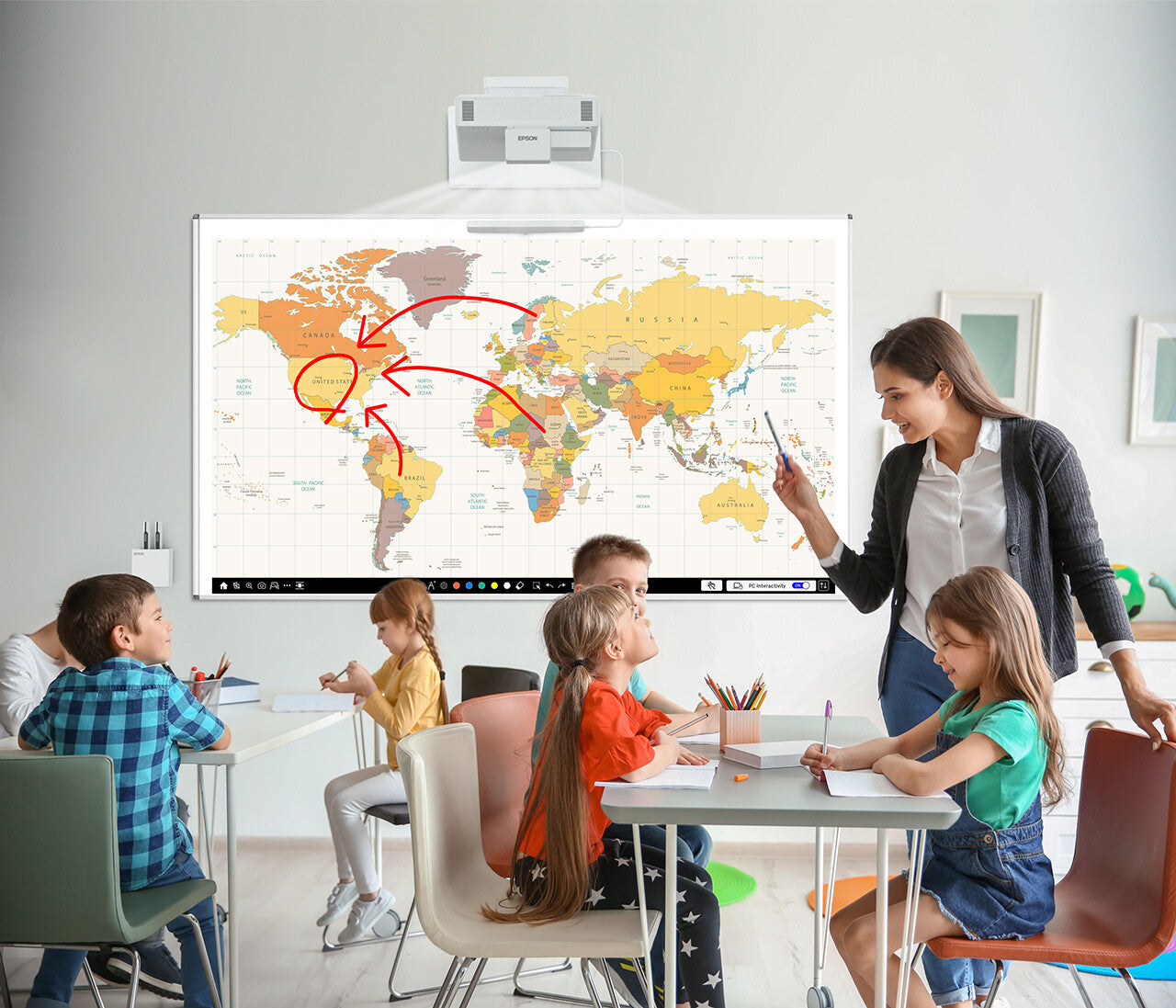 Deliver impactful sessions with a multi-touch display of up to 100 inches (16:9 standalone), 120 inches (16:6 standalone), or 155 inches using Epson's DuoLink feature, which combines two interactive display using built-in Edge Blending.