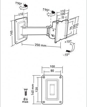 Swivel angle range | 90 |