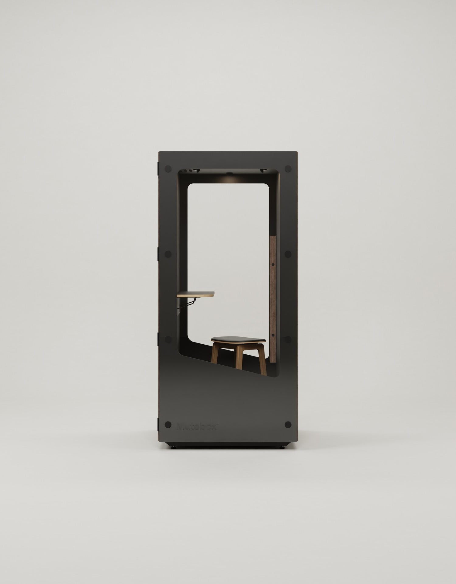MuteBox One (Dual Glass) model med Black Oak akustikpaneler, er lamellerne i farven sort.