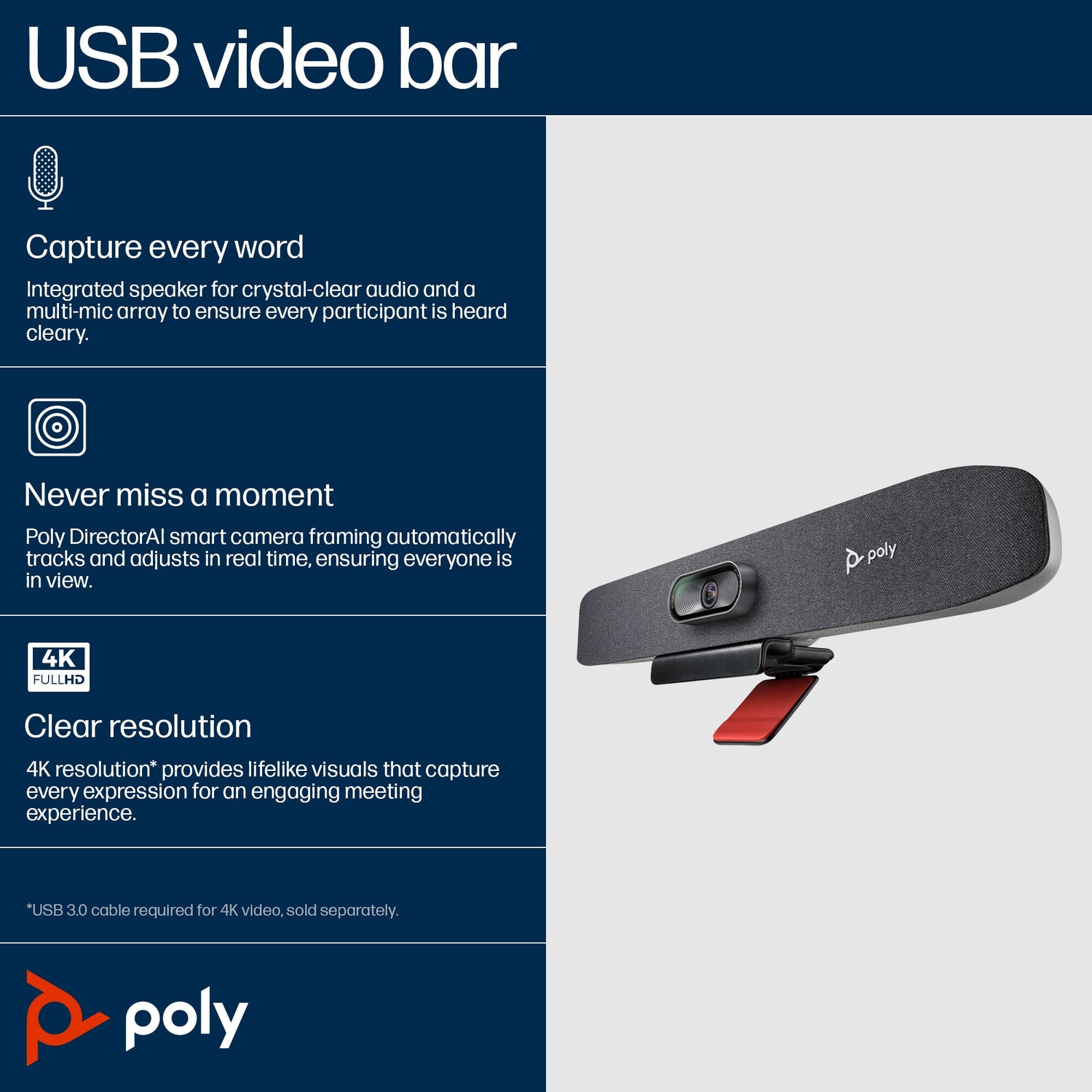Poly Studio R30 USB Video Bar No Radio GSA/TAA
